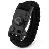 - 15 in 1 survival bracelet with compass, wrench, thermometer and etc.