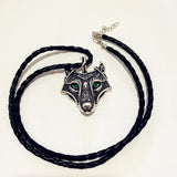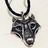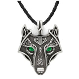 Nordic myth Fenrir Wolf Head with Green Eye Necklace